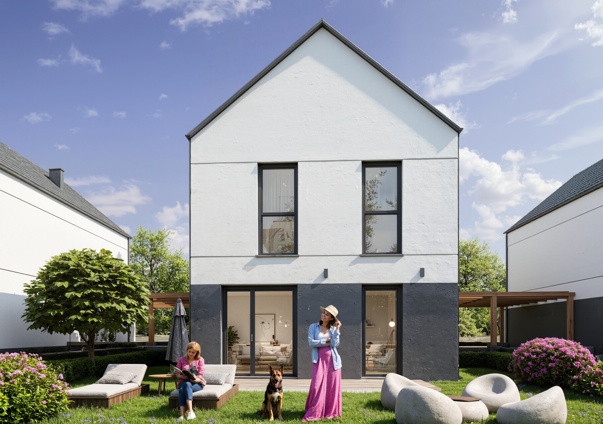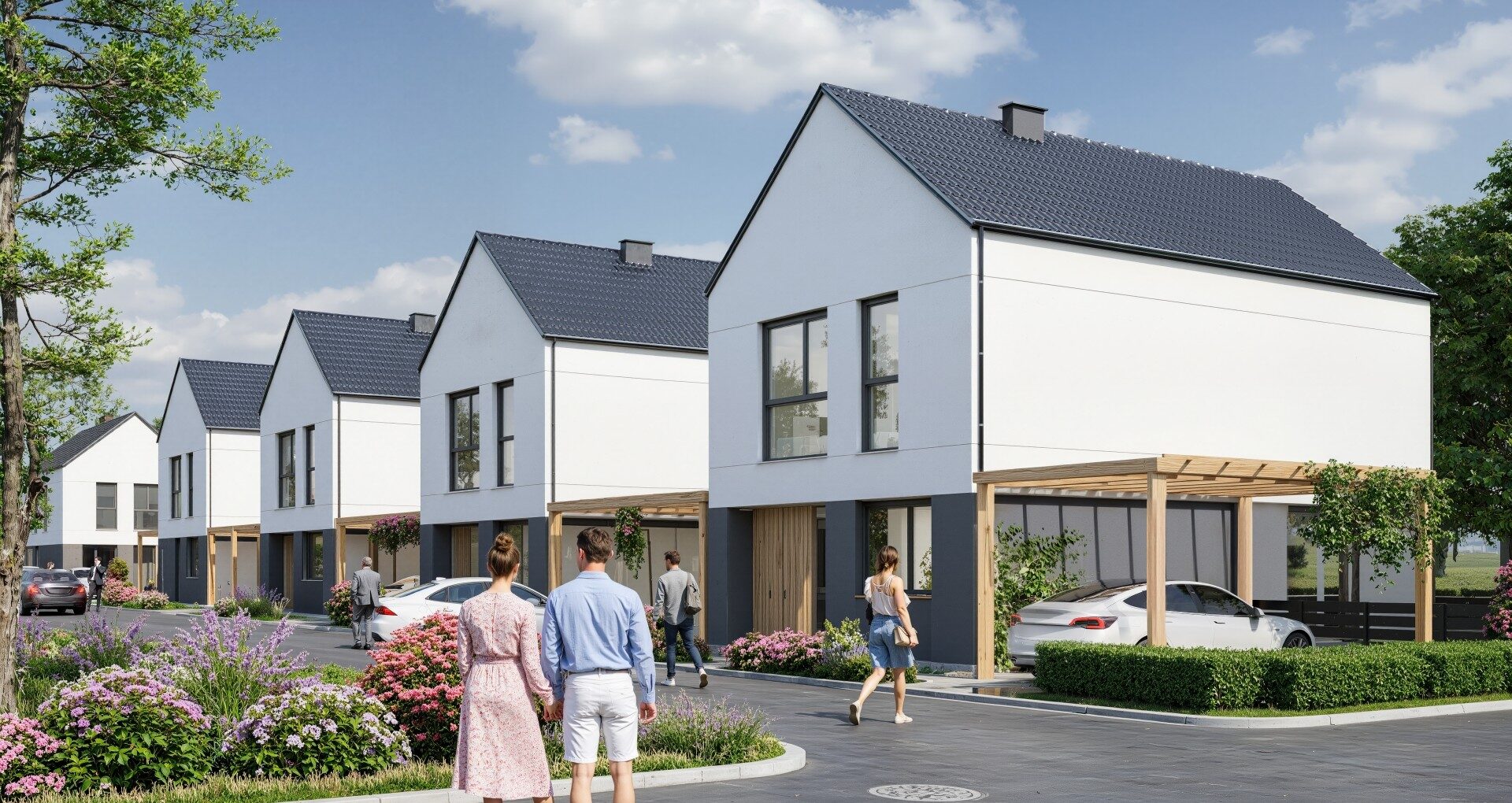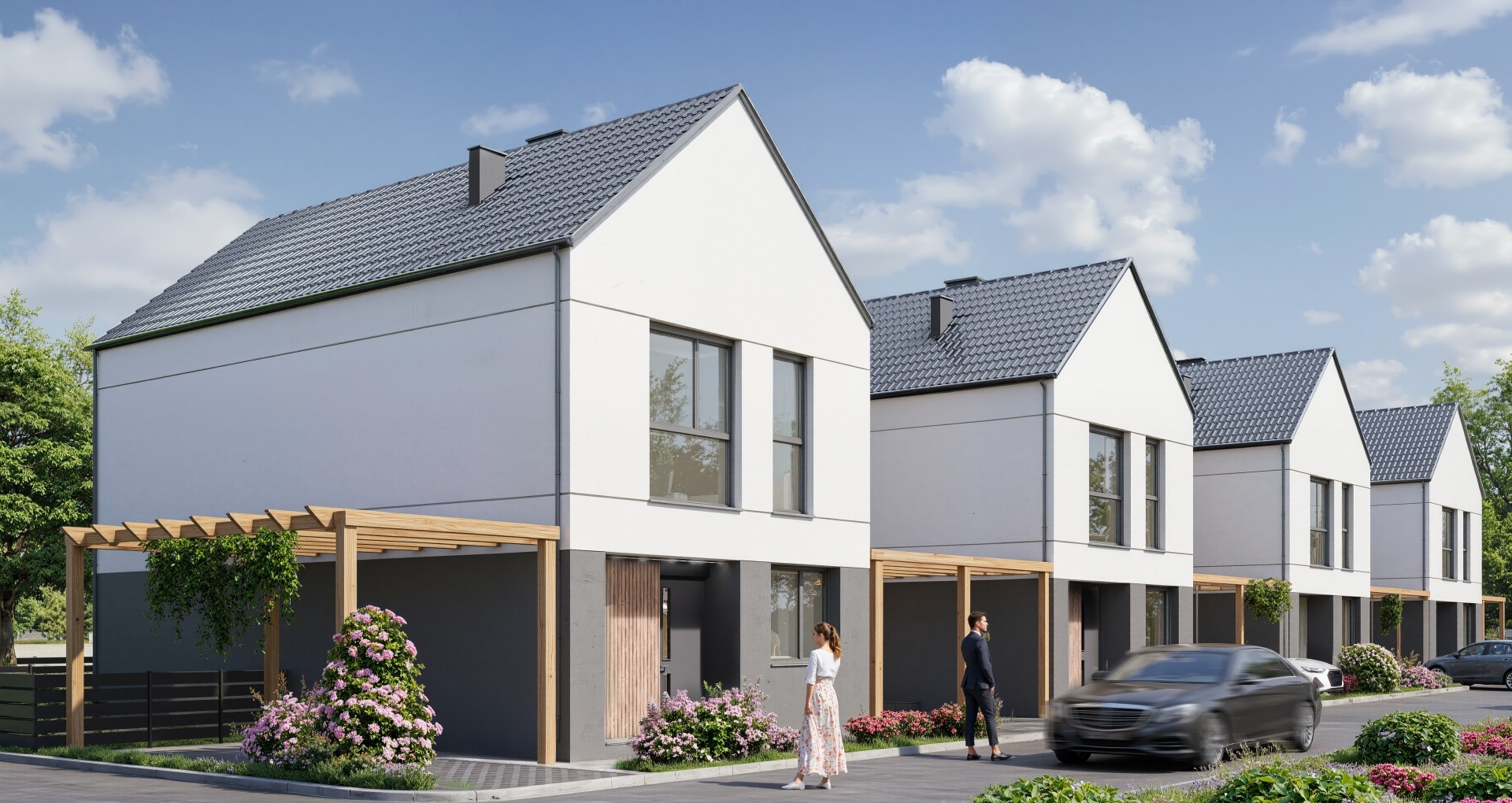 Każdy dom ma prywatny ogród, dzięki czemu możesz cieszyć się przestrzenią na świeżym powietrzu od pierwszego dnia. Przy budynkach znajdują się również miejsca postojowe – zawsze łatwo zaparkujesz swój samochód. To dom, w którym możesz wreszcie mieszkać tak, jak lubisz: wygodnie, spokojnie i po swojemu.